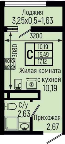 • Минимальная площадь: 17 м²