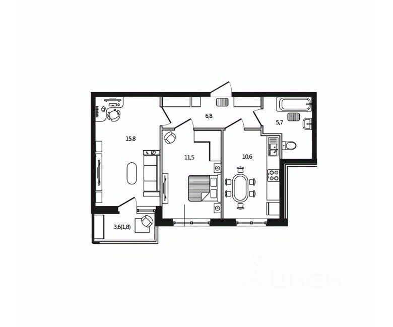 58 м² · Этаж 6 из 9