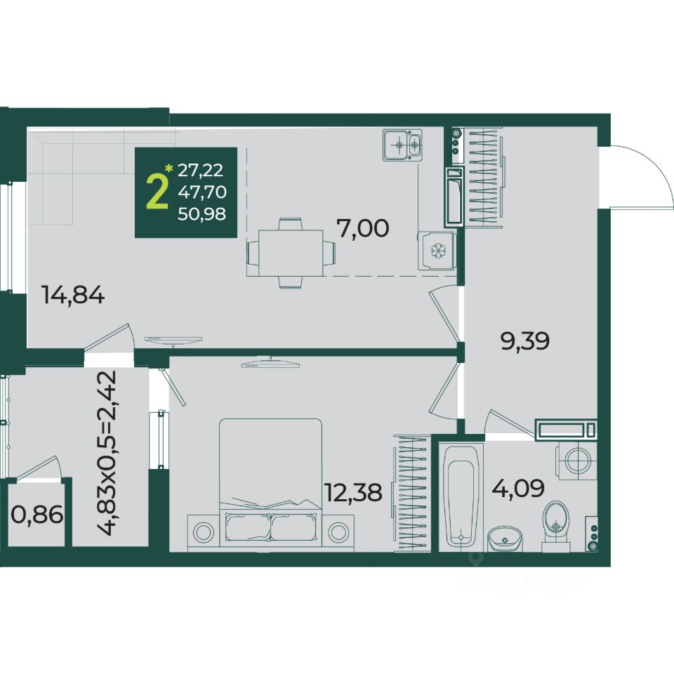 Студия 22.56 м², на 7 этаже в жилом комплексе ''Дом 101''. ЖК Дом 101 - это уникальное пространство на территории 101 га. Парк 20 га с спортивными площадками и амфитеатром. Школа на 1725 мест и пять детских садов. Благоустроенные дворовые территории с детскими площадками и зонами отдыха создают комфортную среду для семей. 1476