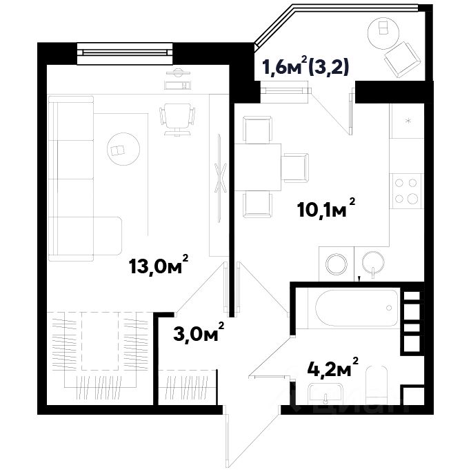 43 м² · Этаж 7 из 16