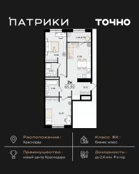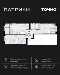 Продаётся 2-комнатная квартира в строящемся доме (Литер 2.2), срок сдачи: IV-кв. 2026, общей площадью 62.2 кв.м., на 4 этаже. Новый жилой комплекс ''Лето'' от застройщика ''ГК Дарстрой'' расположен по адресу город Краснодар, улица Западный Обход.