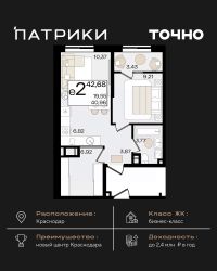 РАСПОЛОЖЕНИЕ Квартира находится в развитом жилом районе Восточный, в 10 минутах от знаменитого парка ''Краснодар''. В свой выходной или после работы можно насладиться тишиной в Японском саду, прогуляться в Парке Облаков, поиграть в теннис или просто полюбоваться красивыми фонтанами и арт-объектами. В шаговой доступности новая школа на 1550 мест и детские сады, прогулочный бульвар с удобными лавочками и беседками, сетевые магазины, аптеки, кофейни, пункты выдачи интернет-заказов. Во дворе современные, безопасные детские и спортивные площадки с прорезиненным покрытием, зеленые рулонные газоны, деревья и кустарники. До остановки общественного транспорта 5 минут. ОТДЕЛКА В квартире вас ждет качественный ремонт под ключ: •Качественная металлическая входная дверь с надежным замком и фурнитурой •Стильные межкомнатные двери •Матовые натяжные потолки •Плотные виниловые обои пастельных тонов •Санузел под ключ: ванна с декоративным экраном, удобная раковина, смесители, полотенцесушитель. На полу керамогранит. •Установлены все радиаторы, выключатели и счетчики •Балкон и лоджия остеклены КОМФОРТ В цокольных этажах домов расположены продуктовые и хозяйственные магазины, кофейни, пункты выдачи и др. Вы непременно оцените удобные входные группы на уровне земли - вам не придётся подниматься с коляской или с тяжелыми пакетами по ступенькам - всего пару шагов, и вы в подъезде. Просторные и светлые лифтовые холлы, безопасные и бесшумные лифты. Уютный двор, в котором находятся детские и спортивные площадки с прорезиненным безопасным покрытием, уличные тренажеры, развивающие аттракционы, а также комфортные зоны отдыха. В таком дворе приятно отдыхать или заниматься спортом взрослым и очень интересно играть детям. Дома находятся на большом расстоянии друг от друга, поэтому во дворах много свободного пространства. ПРЕДЛОЖЕНИЯ ЭТОГО МЕСЯЦА: •Кухонный гарнитур со встроенной техникой в подарок от застройщика. •Парковочное место в многоуровневом паркинге от 50 000 рублей при покупке квартиры. •Квартиры с улучшенной евро-отделкой: межкомнатные двери с матовым стеклом, качественный ламинат в комнатах и прихожей, дизайнерская керамическая плитка в санузлах на стенах и полу, вся необходимая сантехника, удобная раковина и подвесная тумба, зеркало, надежные смесители, полотенцесушитель. Предложения ограничены, подробности уточняйте у менеджера. ГИБКИЕ ВАРИАНТЫ ПРИОБРЕТЕНИЯ •ИПОТЕКА СЕМЕЙНАЯ•IT-ИПОТЕКА•СПЕЦ.ПРОГРАММА ''ИПОТЕКА ДЛЯ МЕДИЦИНСКИХ И ПЕДАГОГИЧЕСКИХ РАБОТНИКОВ''•РАССРОЧКА С ВОЗМОЖНОСТЬЮ ЗАСЕЛЕНИЯ•НАЛИЧНЫЙ РАСЧЕТ (предоставляется скидка)•МАТЕРИНСКИЙ КАПИТАЛ•ВСЕ ВИДЫ СЕРТИФИКАТОВЗвоните сейчас и оставляйте заявку, пока действуют выгодные условия по ипотеке! А лучше приезжайте, посмотрите квартиру сами и вы точно в нее влюбитесь!