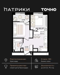 Флагманский проект группы компаний Точно - жилой комплекс бизнес-класса Патрики, это 10 домов разной этажности расположившихся на 28,5 гектарах. Жилой комплекс с концепцией город в город - прогулочные аллеи, парковая территория, 3 детских сада, 2 школы - одна из которых частная, Гранд аллея с ресторанами, фонтанами и модными бутиками, уникальные мафы и ландшафтный дизайн, создают особую атмосферу - место в котором хочется находиться. В Патриках предусмотрен и креативный кластер Цех, который включает в себя пространство для коворкинга, фудкорт, бутики, детский комплекс, лектории, фитнес-клуб Баланс с волной для сёрфа. Но и это еще не все ГК Точно уважает историю, поэтому мы сохранили 2 башни - наследство от завода ''Сельмаш'' исторический арт-объект назвали Мастер и Маргарита.