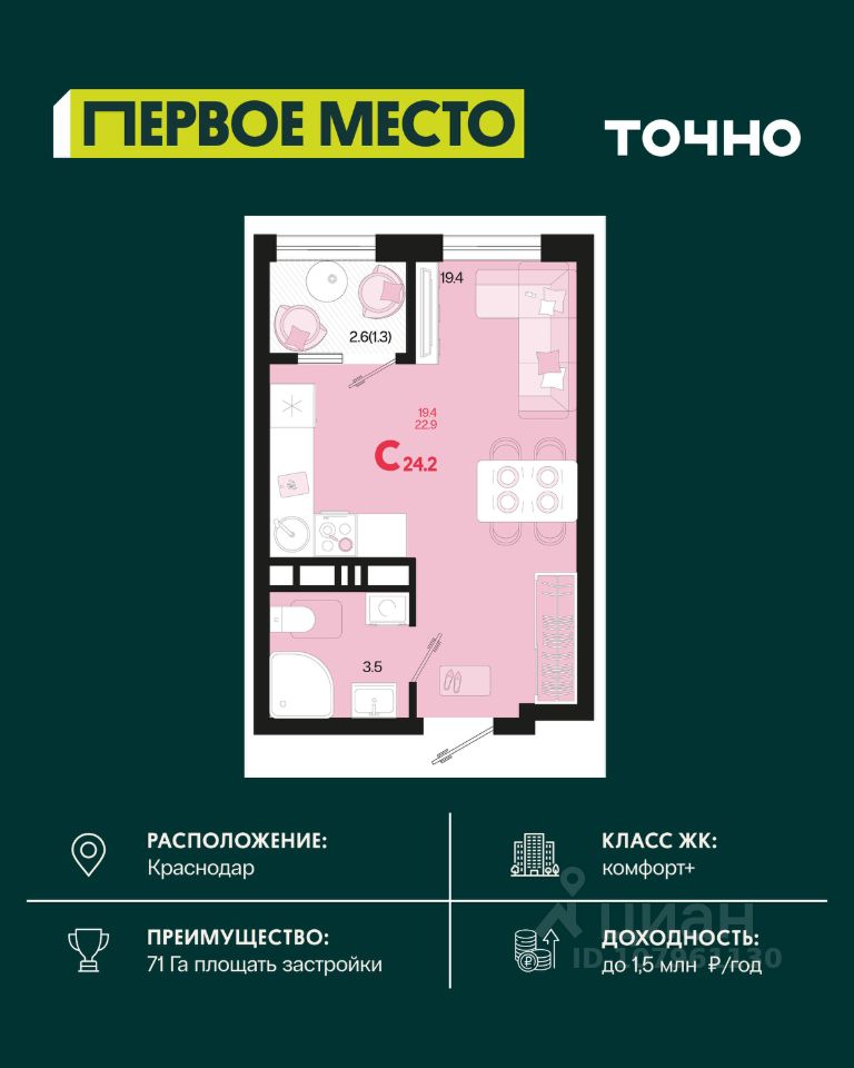 Продаётся квартира бизнес-класса от застройщика ''Семья'' Каково это — жить в центре Краснодара в ЖК ''Все Свои''?????Семь 24-этажных стильных домов бизнес-класса, динамичная архитектура.????Панорамные виды на исторический район и парк ''Краснодар''.????Все важные точки города — в пяти минутах от вас. ????Современный детский сад и школа только для жителей.????Коммерческая галерея на первом этаже.????Безаналоговый двор-парк с плейхабом и спортивными зонами.????Дизайнерское оформление общих зон.????130 планировочных решений квартир с мастер-спальными, гардеробными и огромными лоджиями.''Все Свои VIP'' — настоящий бастион с тремя уровнями безопасности, доступом по Face ID и системой ''Умный дом''.На территории комплекса располагаются обустроенные детские площадки, площадка для отдыха взрослых, спортивная площадка. По периметру комплекса предусмотрена большая парковка на 6000 тыс. автомобилей.Развитая инфраструктура - строиться элитная 23 гимназия и уже построен детский сад, . До центра города 5 минут. До моря 2,5 часа. Приближенность к основным транспортным магистралям делает удобным и быстрым перемещение в другие городские зоны. Звоните и приобретайте квартиры от СК ''Семья'' в Краснодаре! Квартиры можно приобрести:Семейной Ипотеке,Ипотека с господдержкой, Льготная IT ипотека, Военная ипотека, Оплата первоначального взноса мат.капиталом, Оказываем помощь в открытии. Вам здесь точно понравится.