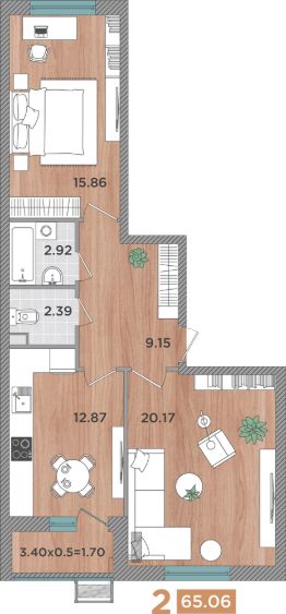 • Наибольшая площадь: 99 м²