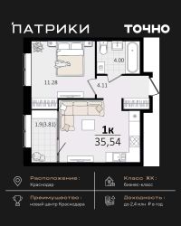 Продаётся 1-комнатная квартира в сданном доме (Литер 22), срок сдачи: III-кв. 2024, общей площадью 35.7 кв.м., на 4 этаже. Микрорайон ''Красная площадь'' - новый, перспективный, масштабный, самодостаточный проект города Краснодар. Здесь создается уникальный зеленый остров, в котором парки займут 30% всей площади. Каждый житель микрорайона найдет необходимое пространство для спокойного отдыха в окружении природы. Для Вас продуманные и комфортные планировки квартир, собственный парк с авторским ландшафтом и уникальная аллея современного искусства с фонтаном, разделение зон в каждой очереди домов для отдыха и спорта, объекты социального значения - и все необходимое для уютной жизни в ритме столицы в шаговой доступности. По сути МКР ''Красная площадь'' - это микрогород с хорошо развитой инфраструктурой, который отличает удачное расположение, ощущение красоты места и гармоничность окружающего пространства. Среди ключевых преимуществ: удобное расположение поблизости от крупнейшего делового и развлекательного кластера (рядом с ВКК ''Экспоград Юг'', через дорогу от МЦ ''Красная Площадь''). Микрорайон составляют лаконичные ансамбли домов, гармонично вписанные в окружающую инфраструктуру благодаря авторской архитектуре и выразительности силуэта всей застройки. В микрорайоне несколько детских дошкольных учреждений, а в каждом дворе спортивные и детские площадки. Вы можете отдыхать всей семьей и найти развлечение на любой вкус. Всего в нескольких минутах от микрорайона находятся различные учебные заведения, а развитая транспортная сеть обеспечит быструю и комфортную поездку. Микрорайон будет радовать пенсионеров своим уникальным архитектурным дизайном, парками и скверами, где можно комфортно проводить время и заводить новых друзей! Рядом с микрорайоном располагаются современные бизнес-центры и офисы - это то, что нужно для карьерного роста молодому специалисту. Современный и уютный микрорайон не оставит равнодушными ни одного приезжего. Приемлемые цены и качество новостроек - лучший вариант приобретения нового жилья. Масштаб - комплексная застройка территории на более, чем 33 Га. Основной идеей данного проекта стало создание среды, совмещающей в себе преимущества жизни в городе (развитая инфраструктура, транспортная доступность, наличие всех необходимых коммуникаций) с прелестями загородной жизни (низкая плотность застройки, обилие зеленых насаждений, благоприятная экологическая обстановка).