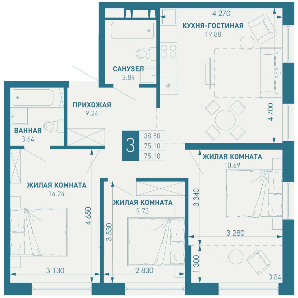 75 м² · Этаж 6 из 18