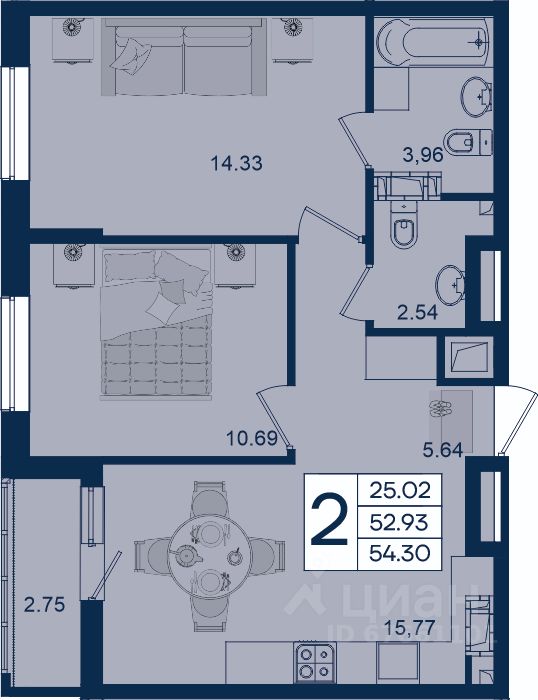 25 м² · Этаж 2 из 9