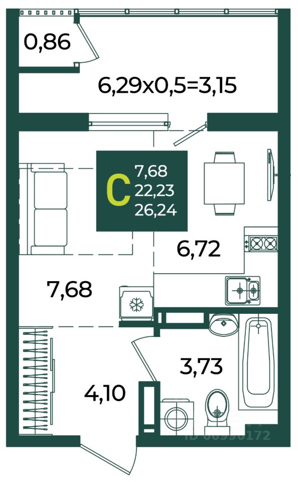 22 м² · Этаж 15 из 16