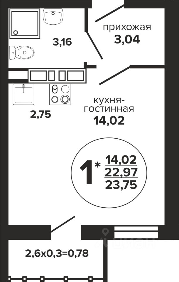 24 м² · Этаж 14 из 16