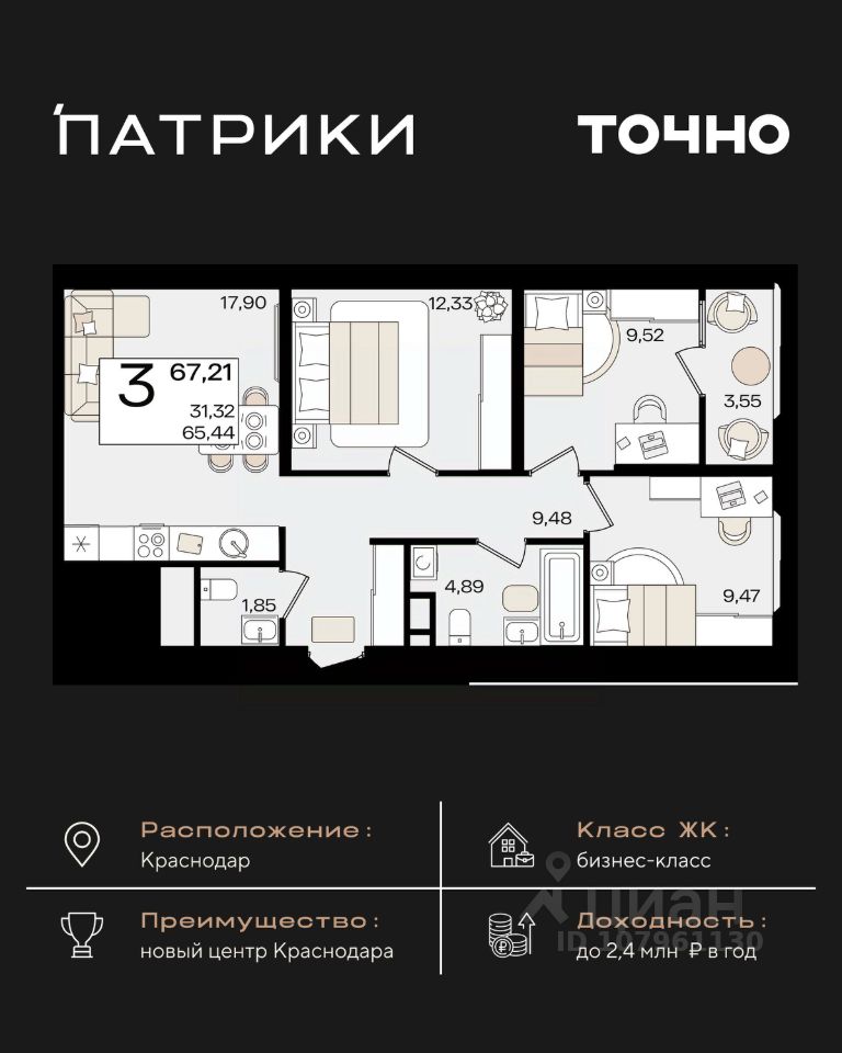 Проект ПРЕМИУМ-КЛАССА в центре Краснодара. Фестивальный микрорайон, ''Поле Чудес''. Дом сдан! ТОЛЬКО В ФЕВРАЛЕ! ЭКСКЛЮЗИВНАЯ ВЫГОДА НА ОГРАНИЧЕННЫЙ РЯД КВАРТИР в ЖК ''ЕКАТЕРИНИНСКИЙ ПАРК'': •на 1 ком. и 2 ком. - до 20 000 р/м2. •на 3 ком. - до 25 000 р/м2. А также льготные условия приобретения по программе ''Семейная ипотека'': • Ипотечная ставка 6% на весь срок • Минимальный первый взнос от 20% Торопитесь взять семейную ипотеку на текущих условиях - совсем скоро программа ужесточится. ЖК ''Екатерининский парк'' - лучший девелоперский проект 2024 по версии ИД ''Коммерсант'' (в ежегодной премии ''Твердые знаки''). Здесь не просто квадратные метры, а атмосфера комфорта и приватности: • Авторская архитектура • Каскадная застройка: от малоэтажных домов 3 этажа к высотным доминантам • Элегантная баварская кладка • Подземный паркинг • Два собственных детских сада • Закрытая территория: система доступа в ЖК только для резидентов • Двор-парк с фонтаном • Зоны отдыха и барбекю • Детские эко-площадки и зоны кроссфита Премиум-подход в каждой детали: Консьерж-сервис Охрана 24/7 Дизайнерские лобби Система ''Умный дом'' Потолки 3,1м Резиденции на выбор: от уютных видовых квартир до масштабных резиденций до 500 м² Успейте забронировать жилье бизнес-класса с эксклюзивной выгодой. До ужесточения ''Семейной ипотеки'' осталось немного. Звоните прямо сейчас!
