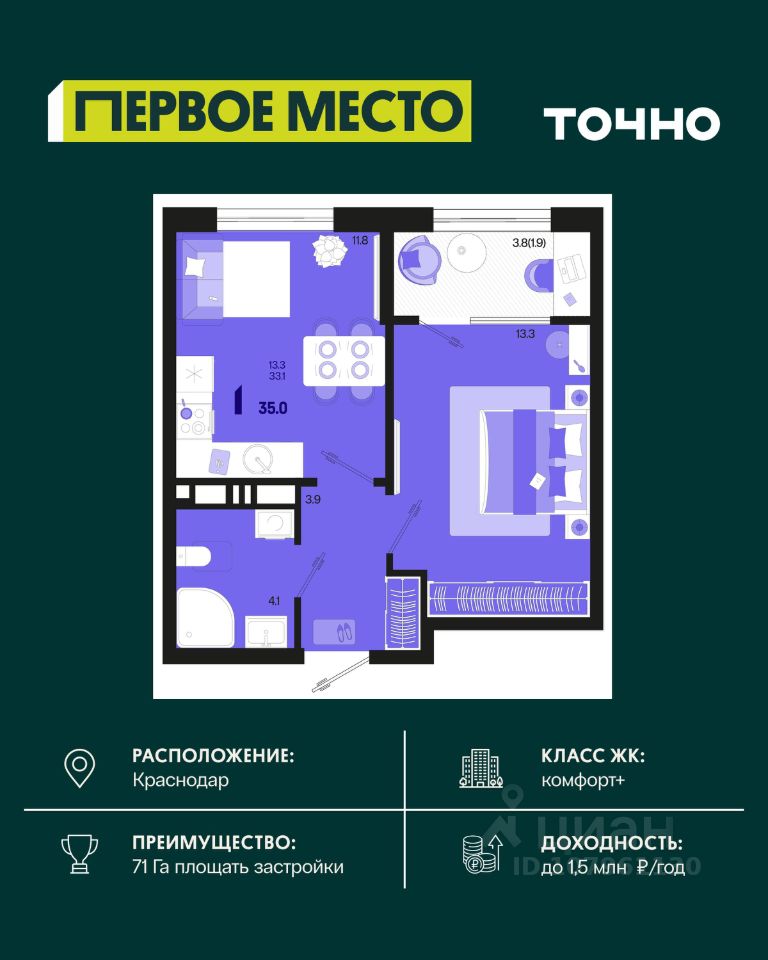 ЖК ''Все свои VIP'' — квартира бизнес-класса в центре Краснодара. Инфраструктура, стиль, инвестиции. Это не просто жильё — это образ жизни с высоким уровнем комфорта, статуса и выгоды. ''Все свои VIP'' — отличный выбор: • Локация премиум-уровня: всего 10 минут и вы у главной артерии города - улица Красная. Всё нужное рядом: торговые точки, кафе, культурные объекты, прогулочные зоны. Удобный выезд в любом направлении города. • Полностью развитая инфраструктура внутри комплекса: школа и детский сад, коммерческие галереи, закрытая территория, двор-парк, спортивная и детская площадки. • Интеллектуальные планировки: максимум полезного пространства для ваших целей. Высота потолков до 3 метров. • Панорамное остекление дарит вам впечатляющий вид на центр столицы Кубани. • Система умный дом: управление доступом во двор или в подъезд, телеметрия и домофония в вашем смартфоне. Для автолюбителей интеллектуальный шлагбаум. • Отличный вариант для инвестиций благодаря расположению и классу жилья. Выгодные условия приобретения • Возможность приобрести квартиру с максимальной выгодой — до 2 190 000 ?. • Семейная ипотека от 2,5%. • IT ипотека - 6%. • Возможность покупки по господдержке и с использованием маткапитала. • Рассрочка с удобным графиком платежей. СК Семья входит в топ-5 среди застройщиков Краснодарского края. Надёжная компания с десятками реализованных проектов. Звоните — поможем Вам сделать правильный выбор и подобрать лучший вариант под ваш бюджет и цели.