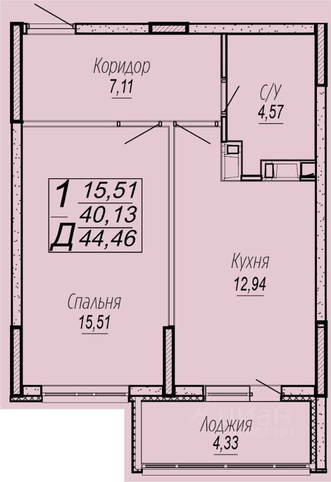 44 м² · Этаж 4 из 16