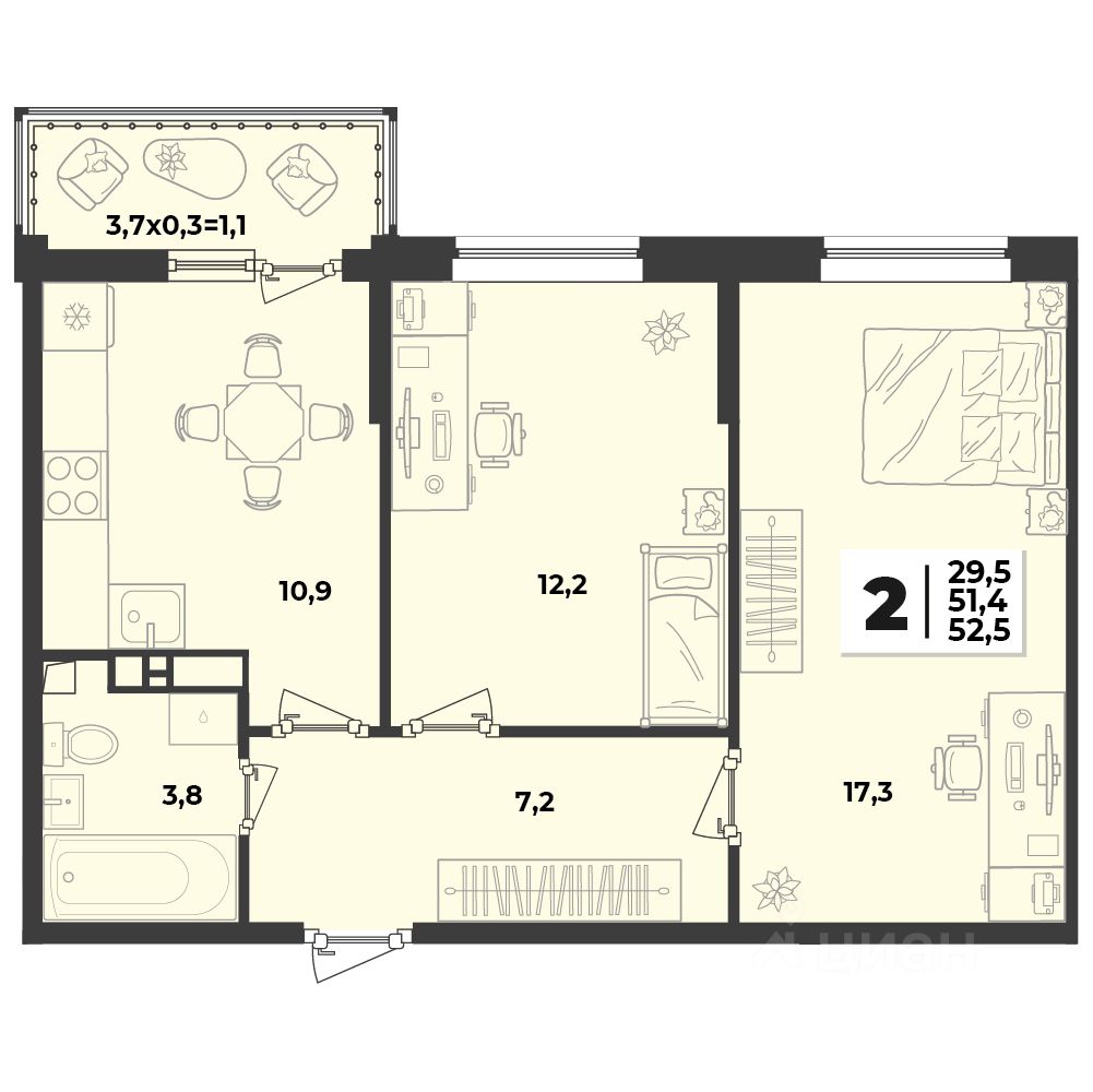 52 м² · Этаж 2 из 9