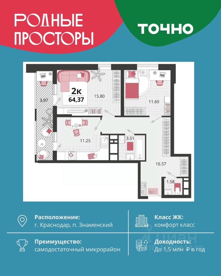 Арт. 127968045 СЕМЕЙНАЯ ИПОТЕКА 6 % Предлагаем приобрести 1 комнатную квартиру в лучшем районе города Тимашевска В шаговой доступности :2 садика Школа Вечерний рынок городаМагазины Почта Безопасные тротуарыСтадион Остановка электрички на Краснодар Вся инфраструктура для комфортного проживания !Квартира продается с техникой и мебелью Застеклен балконРемонт косметический Пластиковые окна и трубыЕсли у вас один ребенок до 7 лет или два до 18 лет - успевайте запрыгнуть в вагон семейной ипотеки со ставкой 6% годовых С нового года ставка 12% !