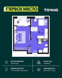 Продается 1 комнатная квартира площадью 37.61 кв. м. на 9 этаже 18 этажного дома, 1 подъезд, номер 99. Стоимость данного лота включает в себя ремонт, мебель и технику. Будут представлены 3 варианта обустройства квартиры: светлый, тонированный и авторский. Для более подробного ознакомления вы можете обратиться в отдел продаж. Жилой комплекс ''ИНАЧЕ в Молодежном'' включает в себя 14 домов комфорт+ класса переменной этажности с более чем 100 видами планировок, в том числе квартиры с террасами, двухуровневые квартиры и урбан виллы, детский сад на 350 мест, храм, 2 наземных паркинга, а также бульвар и прогулочные аллеи. Срок сдачи первой очереди 4 квартал 2026 года Жилой комплекс находится в Молодежном — тихом микрорайоне с атмосферой размеренной жизни. Рядом расположен зеленый сквер ''Изумрудный'' с зелеными деревьями и велодорожками. Молодежный — молодой район с готовой инфраструктурой. Всю бытовую и семейную можно легко организовать на расстоянии 10 минут от дома. Есть новая школа, два детских сада, поликлиника, работают магазины, аптеки и салоны красоты. Жилой комплекс расположен рядом с удобными выездами на ключевые городские дороги. Можно быстро доехать как в центр города, так и до моря по Ейскому шоссе. Главные чувства от прогулки по нашему району простота и легкость. Архитектуру мы проработали совместно с архитектурным бюро Маликова и создали район с современным лаконичным обликом. При этом мы учли сценарии жизни людей и современные тренды. В наших домах будут разноэтажные секции. Французские балконы и увеличенные окна. На фасадах не будет визуального шума: кондиционеры будут скрыты с специальных корзинах. По всей территории продумана безбарьерная сеть тротуаров и переходов. Любое перемещение — пешком или с коляской — станет комфортным. - На территории комплекса будут расположены детские и спортивные площадки, а также амфитеатр, арт-объект и храм. - 40% территории занимает озеленение с более чем 50 видами растений. - Хранить автомобиль с комфортом и беречь его от осадков помогут два наземных многоуровневых паркинга. Кроме крытых паркингов, на территории есть открытые — в достаточном числе для жителей и гостей района. - Проект включает в себя строительство современного детского сада и так же в пешей доступности находятся 2 школы. - На первых этажах мы создадим коммерческие помещения с планировками, которые помогают бизнесу. Умный проект коммерции включает удобные входные группы, высокие потолки и панорамные окна, приглашающие заглянуть внутрь. - Эстетика холла продолжает природную идею района. Дизайнерские холлы выполненные в натуральных цветах с живыми деревьями включают в себя места для ожидания, встреч, санузлы, колясочные и постаматы. - Система аудиомультирум в каждой квартир - распределение аудио- и видео-сигналов по всей квартире. Для более подробного ознакомления вы можете обратиться в отдел продаж.