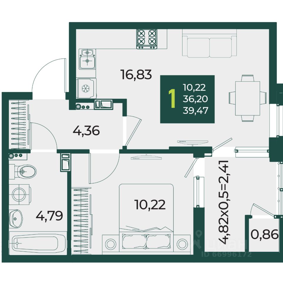 22 м² · Этаж 17 из 24