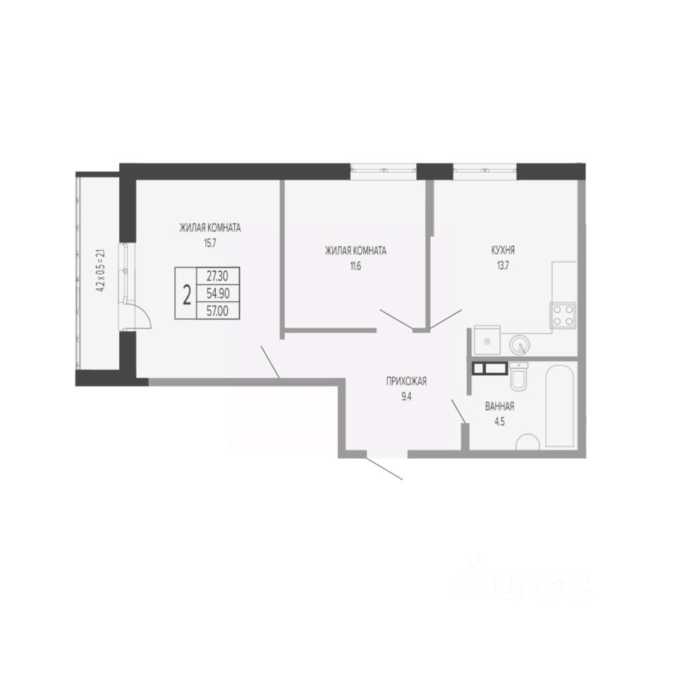 42 м² · Этаж 2 из 8