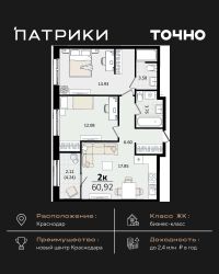 Флагманский проект группы компаний Точно - жилой комплекс бизнес-класса Патрики, это 10 домов разной этажности расположившихся на 28,5 гектарах. Жилой комплекс с концепцией город в город - прогулочные аллеи, парковая территория, 3 детских сада, 2 школы - одна из которых частная, Гранд аллея с ресторанами, фонтанами и модными бутиками, уникальные мафы и ландшафтный дизайн, создают особую атмосферу - место в котором хочется находиться. В Патриках предусмотрен и креативный кластер Цех, который включает в себя пространство для коворкинга, фудкорт, бутики, детский комплекс, лектории, фитнес-клуб Баланс с волной для сёрфа. Но и это еще не все ГК Точно уважает историю, поэтому мы сохранили 2 башни - наследство от завода ''Сельмаш'' исторический арт-объект назвали Мастер и Маргарита.