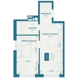 43 м2