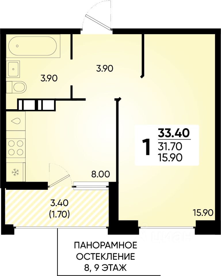 33 м² · Этаж 8 из 9