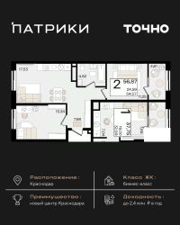 Продаётся 2-комнатная квартира в строящемся доме (Литер 2.2), срок сдачи: IV-кв. 2026, общей площадью 55.9 кв.м., на 8 этаже. Новый жилой комплекс ''Лето'' от застройщика ''ГК Дарстрой'' расположен по адресу город Краснодар, улица Западный Обход.