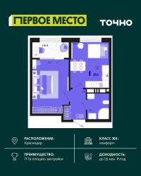 Продается 1 комнатная квартира площадью 38.3 кв. м. на 6 этаже 18 этажного дома, 2 подъезд, номер 271. Стоимость данного лота включает в себя ремонт, мебель и технику. Будут представлены 3 варианта обустройства квартиры: светлый, тонированный и авторский. Для более подробного ознакомления вы можете обратиться в отдел продаж. Жилой комплекс ''ИНАЧЕ в Молодежном'' включает в себя 14 домов комфорт+ класса переменной этажности с более чем 100 видами планировок, в том числе квартиры с террасами, двухуровневые квартиры и урбан виллы, детский сад на 350 мест, храм, 2 наземных паркинга, а также бульвар и прогулочные аллеи. Срок сдачи первой очереди 4 квартал 2026 года Жилой комплекс находится в Молодежном — тихом микрорайоне с атмосферой размеренной жизни. Рядом расположен зеленый сквер ''Изумрудный'' с зелеными деревьями и велодорожками. Молодежный — молодой район с готовой инфраструктурой. Всю бытовую и семейную можно легко организовать на расстоянии 10 минут от дома. Есть новая школа, два детских сада, поликлиника, работают магазины, аптеки и салоны красоты. Жилой комплекс расположен рядом с удобными выездами на ключевые городские дороги. Можно быстро доехать как в центр города, так и до моря по Ейскому шоссе. Главные чувства от прогулки по нашему району простота и легкость. Архитектуру мы проработали совместно с архитектурным бюро Маликова и создали район с современным лаконичным обликом. При этом мы учли сценарии жизни людей и современные тренды. В наших домах будут разноэтажные секции. Французские балконы и увеличенные окна. На фасадах не будет визуального шума: кондиционеры будут скрыты с специальных корзинах. По всей территории продумана безбарьерная сеть тротуаров и переходов. Любое перемещение — пешком или с коляской — станет комфортным. - На территории комплекса будут расположены детские и спортивные площадки, а также амфитеатр, арт-объект и храм. - 40% территории занимает озеленение с более чем 50 видами растений. - Хранить автомобиль с комфортом и беречь его от осадков помогут два наземных многоуровневых паркинга. Кроме крытых паркингов, на территории есть открытые — в достаточном числе для жителей и гостей района. - Проект включает в себя строительство современного детского сада и так же в пешей доступности находятся 2 школы. - На первых этажах мы создадим коммерческие помещения с планировками, которые помогают бизнесу. Умный проект коммерции включает удобные входные группы, высокие потолки и панорамные окна, приглашающие заглянуть внутрь. - Эстетика холла продолжает природную идею района. Дизайнерские холлы выполненные в натуральных цветах с живыми деревьями включают в себя места для ожидания, встреч, санузлы, колясочные и постаматы. - Система аудиомультирум в каждой квартир - распределение аудио- и видео-сигналов по всей квартире. Для более подробного ознакомления вы можете обратиться в отдел продаж.