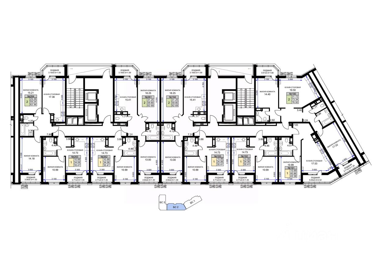 61 м² · Этаж 16 из 16