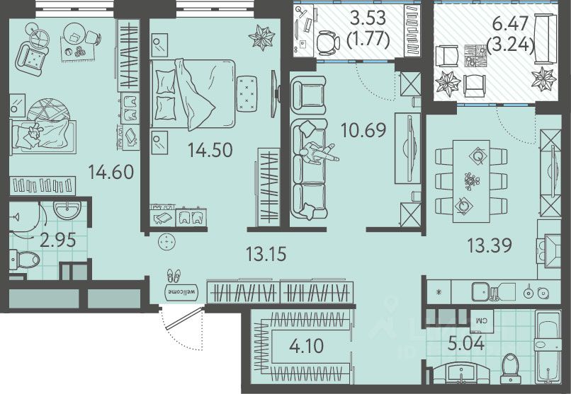 60 м² · Этаж 15 из 24