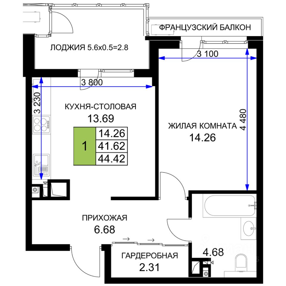 45 м² · Этаж 14 из 16