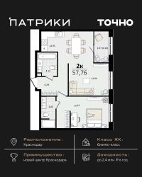 Флагманский проект группы компаний Точно - жилой комплекс бизнес-класса Патрики, это 10 домов разной этажности расположившихся на 28,5 гектарах. Жилой комплекс с концепцией город в город - прогулочные аллеи, парковая территория, 3 детских сада, 2 школы - одна из которых частная, Гранд аллея с ресторанами, фонтанами и модными бутиками, уникальные мафы и ландшафтный дизайн, создают особую атмосферу - место в котором хочется находиться. В Патриках предусмотрен и креативный кластер Цех, который включает в себя пространство для коворкинга, фудкорт, бутики, детский комплекс, лектории, фитнес-клуб Баланс с волной для сёрфа. Но и это еще не все ГК Точно уважает историю, поэтому мы сохранили 2 башни - наследство от завода ''Сельмаш'' исторический арт-объект назвали Мастер и Маргарита.