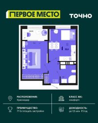 Литер 1, 8 этаж, 211. ''Сердце'' — это комплекс премиум-класса в самом центре Краснодара. Это проект, в котором городская динамика сочетается с комфортом, привлекательностью и продуманной средой для жизни. Здесь история города и энергия современного мегаполиса соединяются в единой архитектурной концепции. Преимущества жилого комплекса ''Сердце''.Транспортная доступность:3 минуты до стадиона ''Краснодар''. и до парка ''Краснодар''.10 минут до ТРЦ ''Галерея''.10 минут до исторического центра Краснодара 10 минут.15 минут до Кубанского государственного университета.Архитектура премиум-класса Архитектура жилого комплекса ''Сердце'' выполнена с выразительной геометрией и акцентом на статус. Ключевые особенности:Уникальный фасад в стиле неоклассицизма.Высококачественные материалы, гарантирующие прочность и долговечность.Равномерная вечерняя подсветка, подчеркивающая геометрию здания.Внутреннее наполнение:В парадных предусмотрены зоны ожидания с мягкими диванами и креслами, журнальными столиками. Переходные галереи, через которые можно пройти на закрытую территорию двора.Внутренняя инфраструктура4 панорамных лифта с видом на Краснодар Консьерж-сервисРесторан и фитнес-зал на 23 этаже Дендрарий во дворе ТехнологииТерритория закрыта для машин Системы безопасности и круглосуточное видеонаблюдение.''Умный Дом''.