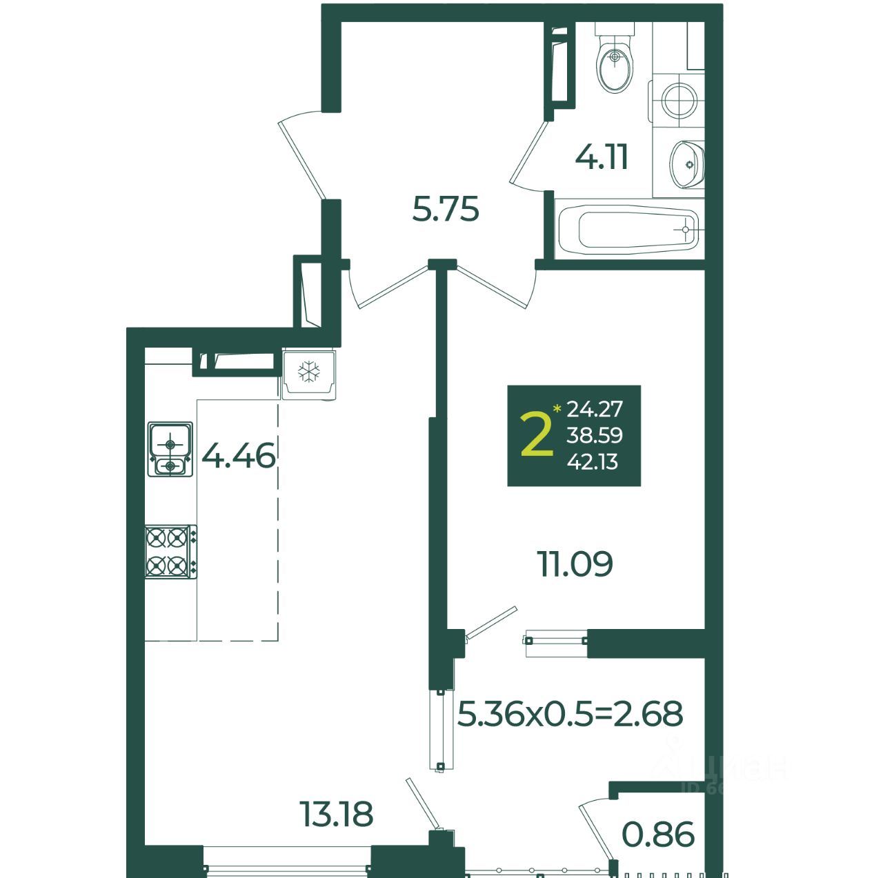 42 м² · Этаж 17 из 18