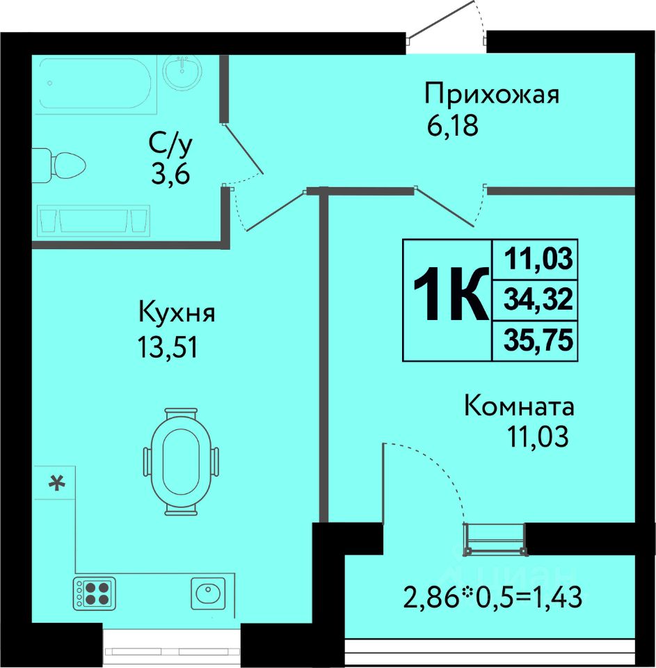 Студия 22.56 м², на 3 этаже в жилом комплексе ''Дом 101''. ЖК Дом 101 - это уникальное пространство на территории 101 га. Парк 20 га с спортивными площадками и амфитеатром. Школа на 1725 мест и пять детских садов. Благоустроенные дворовые территории с детскими площадками и зонами отдыха создают комфортную среду для семей. 1451