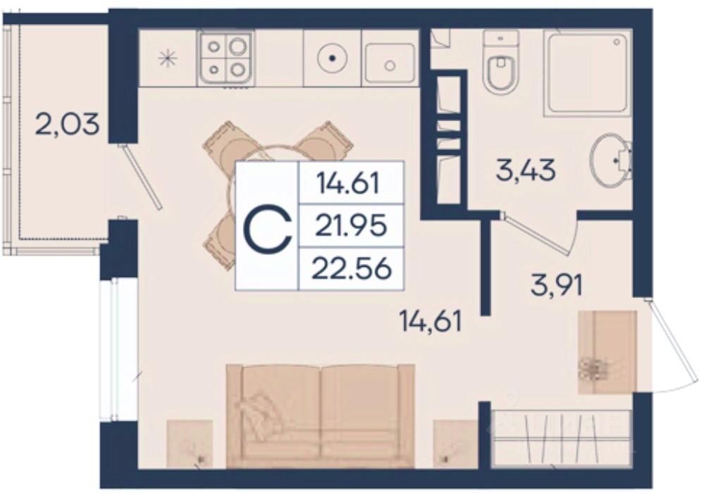 22 м² · Этаж 3 из 18