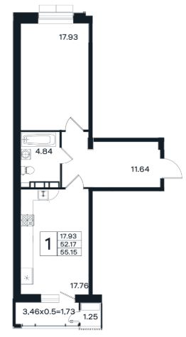 54 м2
