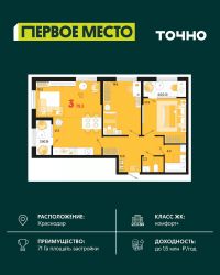 Жилой район ''Первое место''- один из самых масштабных проектов в России. На территории 71 га 18 кварталов, 31 дом переменной этажности от 8 до 18 этажей, собственный парк 9 га, храмовый комплекс, пешеходный бульвар ''Круг семьи'', детские и спортивные площадки, мангальные зоны и различные локации для отдыха. В шаговой доступности действующие муниципальные образовательные учреждения: школа на 1 100 мест и детский сад на 250 мест. Помимо этого, в жилом районе ''Первое место'' построятся школа на 1700 мест с крытым 25-метровым бассейном и 5 детских садов на 1 490 мест. На первых этажах многоуровневых парковок ''паркхабов'' разместится более 61 тыс м2 коммерческих помещений. Жителям будут доступны собственный фитнес-центр, кафе, рестораны и магазины. В каждом подъезде предусмотрены дизайнерские холлы в стиле лобби отелей, консьерж-сервис, лапомойки, отдельные колясочные и велосипедные. Также в домах будут просторные кладовые помещения и комнаты для хранения почты с почтоматами для получения посылок из маркетплейсов.