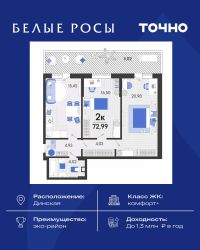 Росы'' малоэтажный жилой комплекс, который находится в экологически чистом районе станице Динской - на берегу реки Кочеты. Наш проект гармонично вписался в загородную жизнь, мы сформировали благоприятную среду для жизни, создания семьи и развития - не зря зовем его ''семейным жилым кварталом''. ''Белые Росы'' занимают 1 место среди новостроек по потребительским качествам в Краснодарском крае и второе место по РФ, а также стал ''Лучшим жилым комплексом-новостройкой в Российской Федерации среди среднеэтажных домов''.