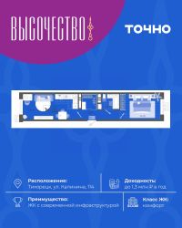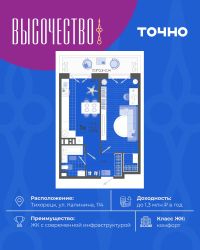 ''Высочество'' — первый ЖК комфорт-класса в Тихорецке. Современные технологии, новейшие представления о комфорте и эргономике жилья -это, то, что характеризует этот комплекс. Расположен в самом центре города. ''Высочество'' — это полностью самостоятельный жилой комплекс, жителей которого порадуют закрытый и свободный от машин двор, коммерческая галерея, спортивные и детские площадки с перголами для отдыха, уютная мангальная зона. По периметру жилого комплекса - открытый бесплатный паркинг на 370 м/мест. Недалеко от ЖК ''Высочество'' находятся детский сад, школы-гимназии, поликлиника, торговый центр, в пешей доступности расположен любимый сквер жителей города ''Звездный''.