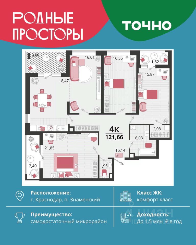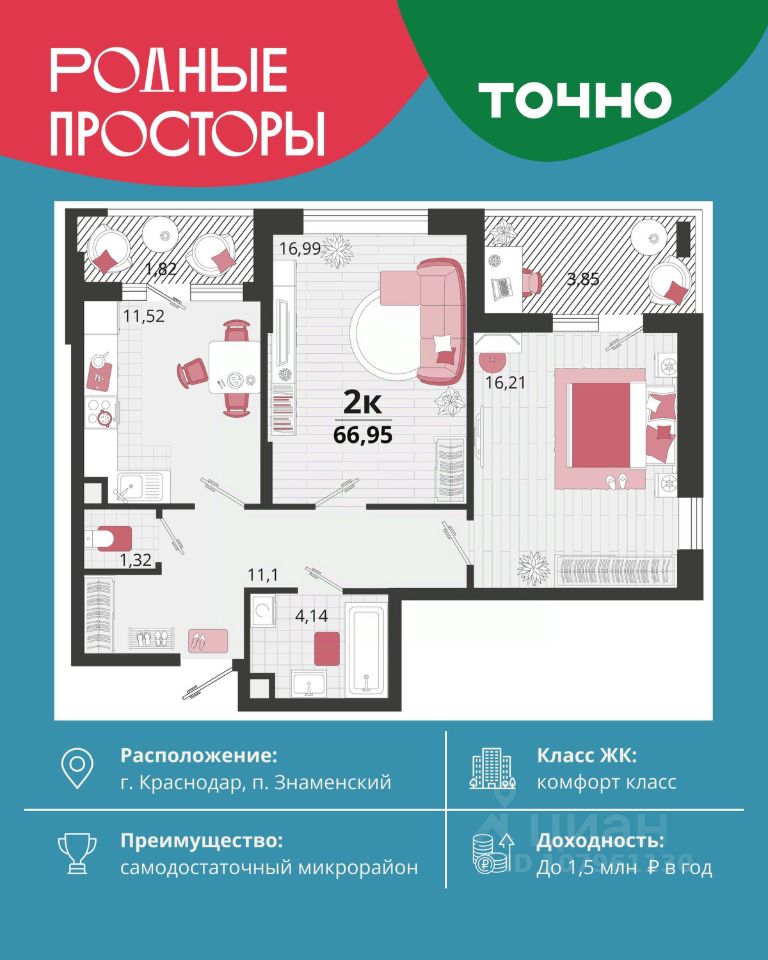 Микрорайон ''Тёплые края'' — это масштабный проект комплексного освоения территории. Жилой комплекс воплотил в себе все самые высокие критерии отбора квартиры по планировочным решениям, благоустройству и инфраструктуре. Преимущества, которые действительно важны: Комфорт и качество: • Монолитно-кирпичные дома с шумо- и теплоизоляцией. • Высокие потолки до 4,2 м, панорамные окна, функциональные планировки. • Предчистовая или чистовая отделка — можно сразу заехать или реализовать свой дизайн. Безопасные дворы без машин, видеонаблюдение, закрытая территория. Благоустройство: • Более 65 000 м² зелёных зон, скверы, аллеи, прогулочные бульвары. • 40 000 м² детских и спортивных площадок — от workout-зон до игровых городков. • Зоны отдыха и барбекю — идеальны для встреч с друзьями и семейных вечеров. Всё рядом: • Собственная школа на 1 800 мест и 3 детских сада на 950 мест. • Поликлиника, аптеки, магазины, кафе и пекарни в шаговой доступности. • Свой торгово-развлекательный центр, фитнес-клуб, фермерский рынок. Удобное расположение: • Район с чистым воздухом, рядом природа и река Кубань. • 15 минут до центра Краснодара и выезда на трассу в сторону моря. • Развитое транспортное сообщение — маршрутки, автобусы, удобные дороги. Выгодные условия покупки: • Семейная ипотека от 2,5%. • IT ипотека - 6%. • Возможность покупки по господдержке и с использованием маткапитала. • Рассрочка с удобным графиком платежей. • Высокий потенциал роста стоимости жилья. Почему ''Тёплые края'' — лучший выбор: • Район строится по принципу ''город в городе'': всё для жизни внутри. • Комфортный баланс между городским ритмом и уютом пригорода. • Идеально подходит и для жизни, и для инвестиций. СК Семья входит в топ-5 среди застройщиков Краснодарского края. Надёжная компания с десятками реализованных проектов. Звоните — поможем Вам сделать правильный выбор и подобрать лучший вариант под ваш бюджет и цели.