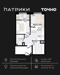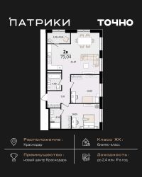 Флагманский проект группы компаний Точно - жилой комплекс бизнес-класса Патрики, это 10 домов разной этажности расположившихся на 28,5 гектарах. Жилой комплекс с концепцией город в город - прогулочные аллеи, парковая территория, 3 детских сада, 2 школы - одна из которых частная, Гранд аллея с ресторанами, фонтанами и модными бутиками, уникальные мафы и ландшафтный дизайн, создают особую атмосферу - место в котором хочется находиться. В Патриках предусмотрен и креативный кластер Цех, который включает в себя пространство для коворкинга, фудкорт, бутики, детский комплекс, лектории, фитнес-клуб Баланс с волной для сёрфа. Но и это еще не все ГК Точно уважает историю, поэтому мы сохранили 2 башни - наследство от завода ''Сельмаш'' исторический арт-объект назвали Мастер и Маргарита.
