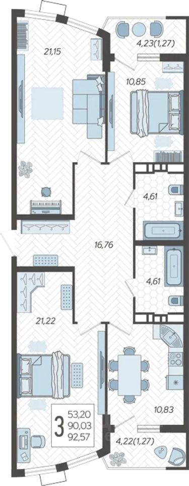92 м² · Этаж 18 из 21