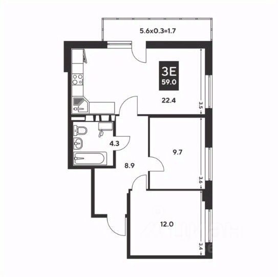 22 м² · Этаж 3 из 9