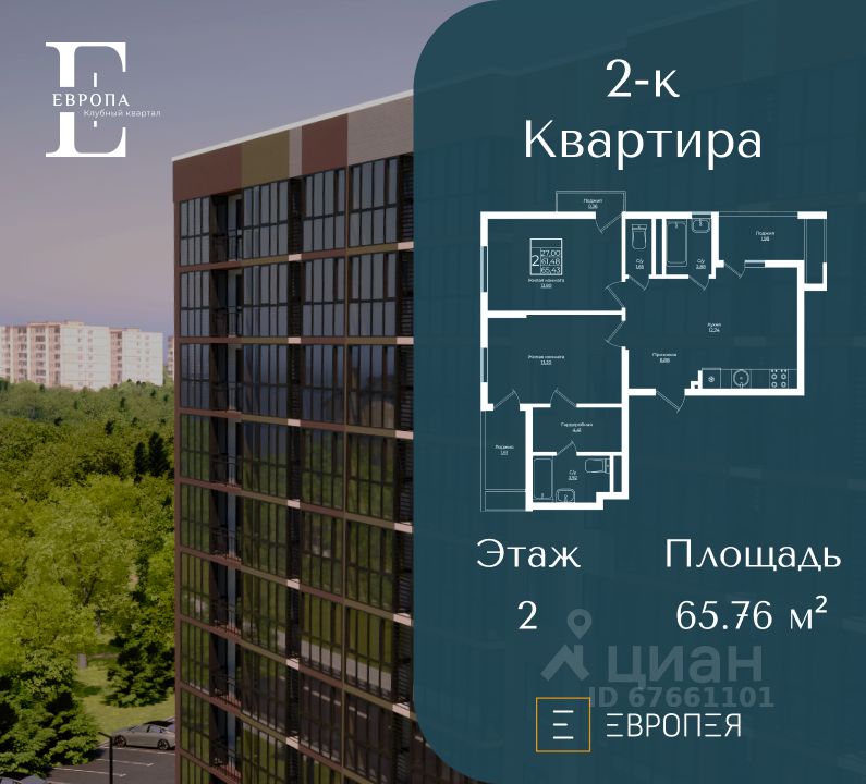 Клубный квартал Европа — уютный жилой район, гармонично сочетающий в себе яркие дизайнерские решения, прекрасную экологию и благоустроенные общественные пространства. Расположен в уникальной локации рядом с культовой ''Немецкой Деревней''. Всего за несколько минут вы сможете прогуляться до живописного Лебединого озера, площади с фонтаном и других знаковых мест этого уютного и развитого района. На территории квартала созданы все условия для комфортной жизни: развитая транспортная инфраструктура — как для владельцев автомобилей, так и для тех, кто предпочитает общественный транспорт. Внутри комплекса вас ждут современные детские и спортивные площадки, зоны отдыха и безопасные прогулочные маршруты. В районе установлена система видеонаблюдения, что гарантирует высокий уровень безопасности. Квартиры с смарт-планировками предоставляют полную свободу для воплощения ваших идей. Создайте пространство, отражающее ваш стиль и потребности, наслаждайтесь комфортом и индивидуальностью в каждом уголке вашей новой квартиры. Звоните прямо сейчас и станьте частью этого современного, безопасного и комфортабельного жилого квартала ''Европа''. Ваша новая квартира ждет именно вас! Стоимость является предварительной и может меняться в зависимости от выбранной ипотечной программы и дополнительных опций. Для уточнения стоимости необходимо обратиться в отдел продаж ГК ''Европея''.