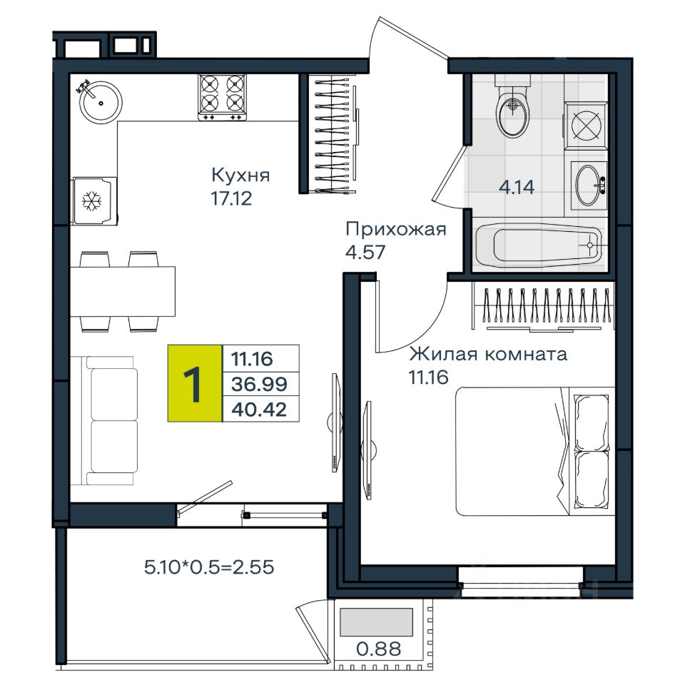 Продаётся 1-комнатная квартира в строящемся доме (Литер 2.1), срок сдачи: IV-кв. 2026, общей площадью 39.1 кв.м., на 8 этаже. Новый жилой комплекс ''Лето'' от застройщика ''ГК Дарстрой'' расположен по адресу город Краснодар, улица Западный Обход.