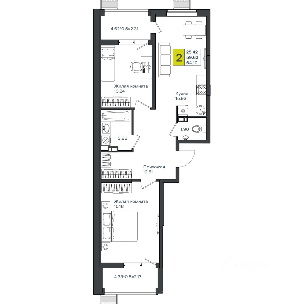 64 м² · Этаж 2 из 4