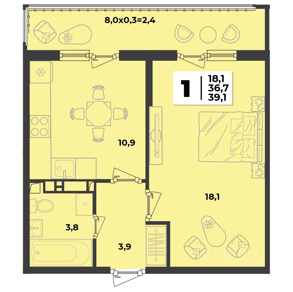 39 м² · Этаж 8 из 9