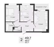 Двухкомнатная резиденция с кухней-гостиной и балконом, а также одним санузлом. Из окон открывается вид во внутренний двор, на бассейны, парки. Высота потолков составляет 3,1 метра. Отделка под ключ