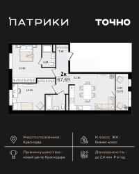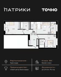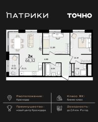 Флагманский проект группы компаний Точно - жилой комплекс бизнес-класса Патрики, это 10 домов разной этажности расположившихся на 28,5 гектарах. Жилой комплекс с концепцией город в город - прогулочные аллеи, парковая территория, 3 детских сада, 2 школы - одна из которых частная, Гранд аллея с ресторанами, фонтанами и модными бутиками, уникальные мафы и ландшафтный дизайн, создают особую атмосферу - место в котором хочется находиться. В Патриках предусмотрен и креативный кластер Цех, который включает в себя пространство для коворкинга, фудкорт, бутики, детский комплекс, лектории, фитнес-клуб Баланс с волной для сёрфа. Но и это еще не все ГК Точно уважает историю, поэтому мы сохранили 2 башни - наследство от завода ''Сельмаш'' исторический арт-объект назвали Мастер и Маргарита.