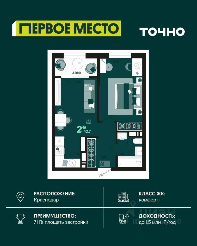 42 м² · Этаж 16 из 18